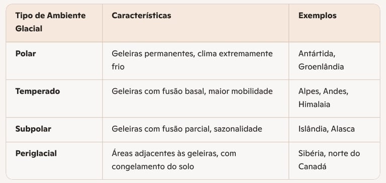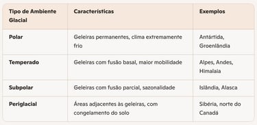 Ambientes glaciais moldam o relevo e influenciam o clima global, afetando a formação de desertos.