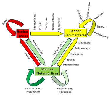 Rochas preexistentes → fusão → magma → rochas ígneas