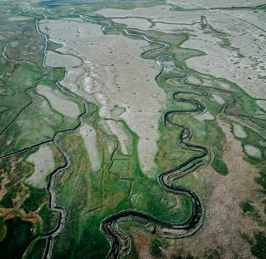 Características: Presença de rios, seus sistemas de drenagem e deltas.