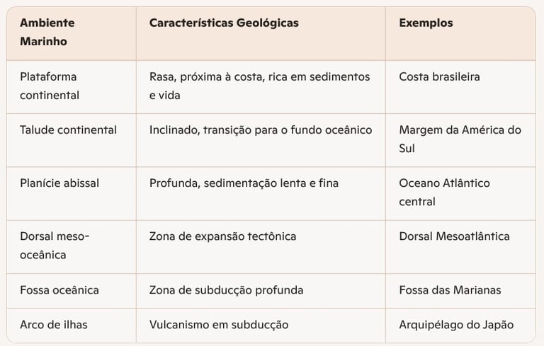 Os ambientes geológicos são regiões da Terra onde ocorrem processos físicos, químicos e biológicos que moldam o relevo, formam rochas e influenciam o clima. Cada ambiente possui características próprias, determinadas por fatores como tectônica, clima, energia disponível e composição das rochas.