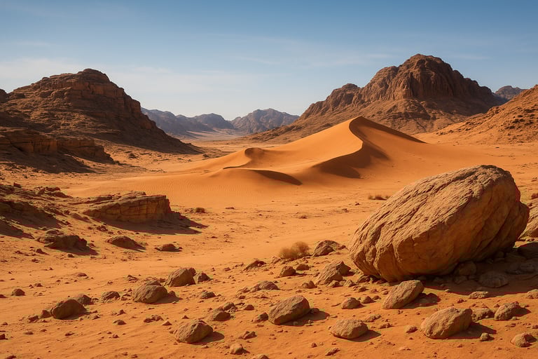 Características: Clima árido, pouca vegetação, forte erosão eólica.