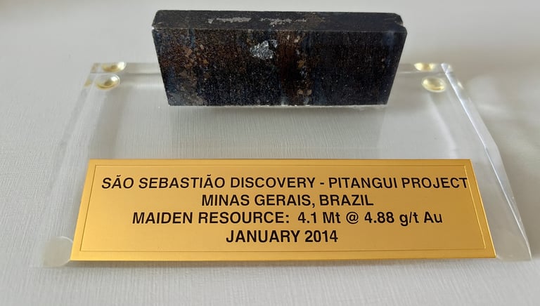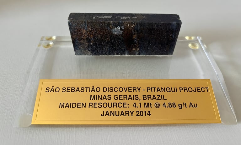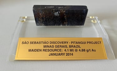 Abaixo está a fotografia de uma "Placa de Reconhecimento" concedido por uma Empresa Multinacional a um dos membros de Portal Explorar pela liderança na descoberta do Depósito Aurífero São Sebastião (~1 Moz Au até o ano de 2020) em Onça de Pitangui-MG