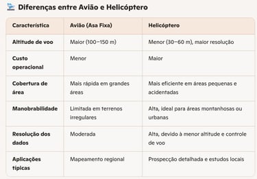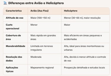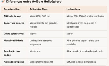 Cobertura: Ideal para áreas pequenas a médias (até dezenas de hectares por dia), com alta densidade de dados.