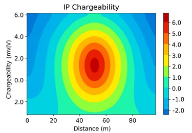 Visualizam zonas condutivas, falhas, contatos litológicos e corpos mineralizados.
