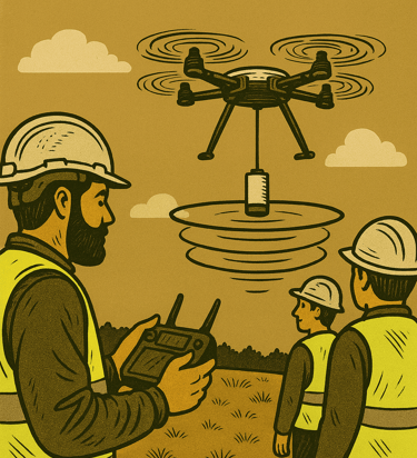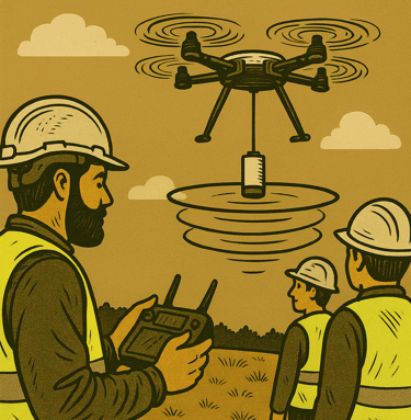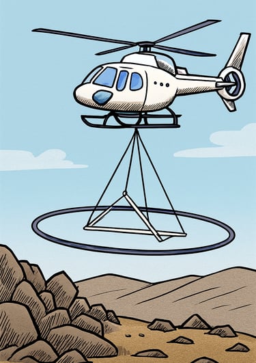 A eletromagnetometria aérea com drone é um método ativo que utiliza campos eletromagnéticos gerados por transmissores embarcados para investigar a condutividade elétrica do subsolo. Ao embarcar sistemas EM em drones, é possível realizar levantamentos de alta resolução em áreas de difícil acesso, com menor custo e impacto ambiental em comparação com helicópteros ou aviões.