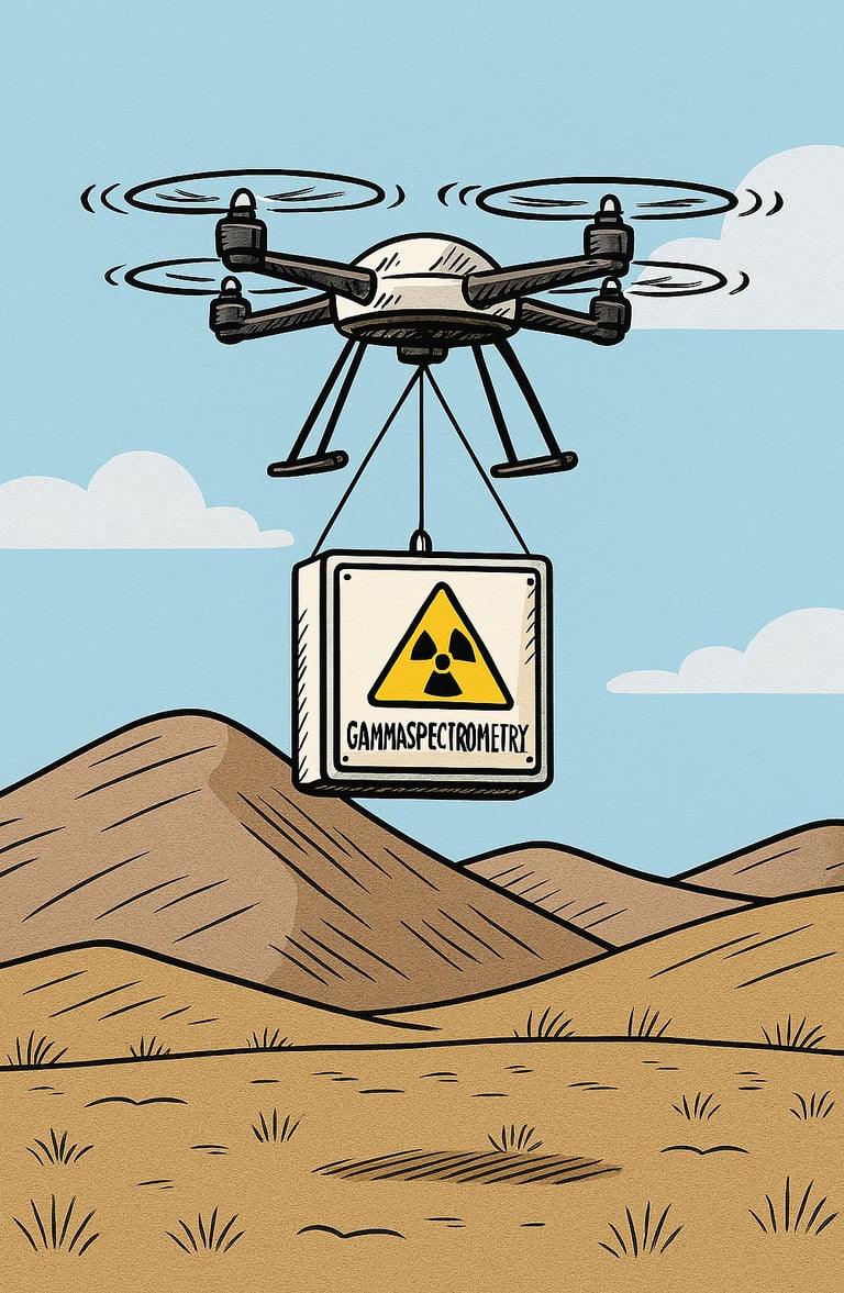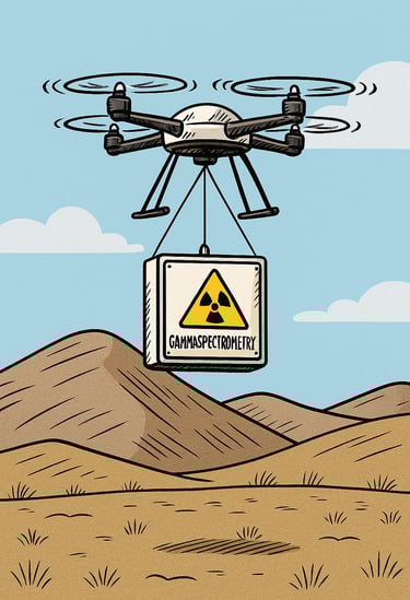 A gamaespectrometria com drone é um método passivo que mede a radiação gama natural emitida por elementos radioativos presentes nas rochas e solos — principalmente potássio (K), urânio (U) e tório (Th). Ao embarcar sensores gamaespectrométricos em drones, é possível realizar levantamentos de alta resolução em áreas de difícil acesso, com baixo custo e baixo impacto ambiental.
