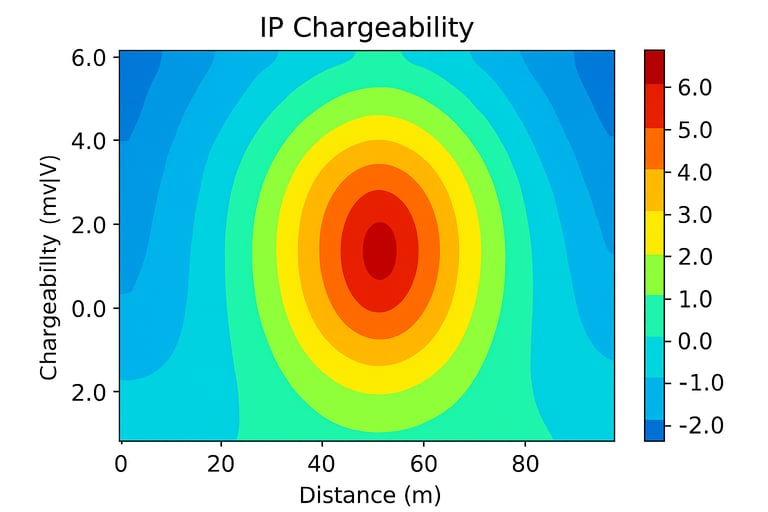 Ideal para mapeamento de veios condutivos, zonas de sulfetos e estruturas enterradas.