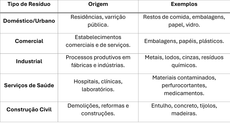 Tipos de Resíduos Abrangidos
