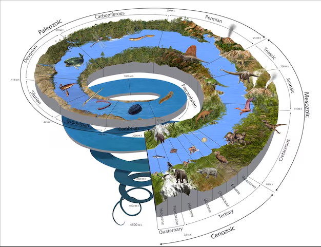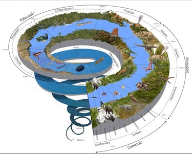 A Espiral do Tempo Geológico é, portanto, uma poderosa metáfora visual que nos lembra que a Terra está em constante transformação — e que nossa existência é apenas um pequeno ponto em uma história de bilhões de anos.